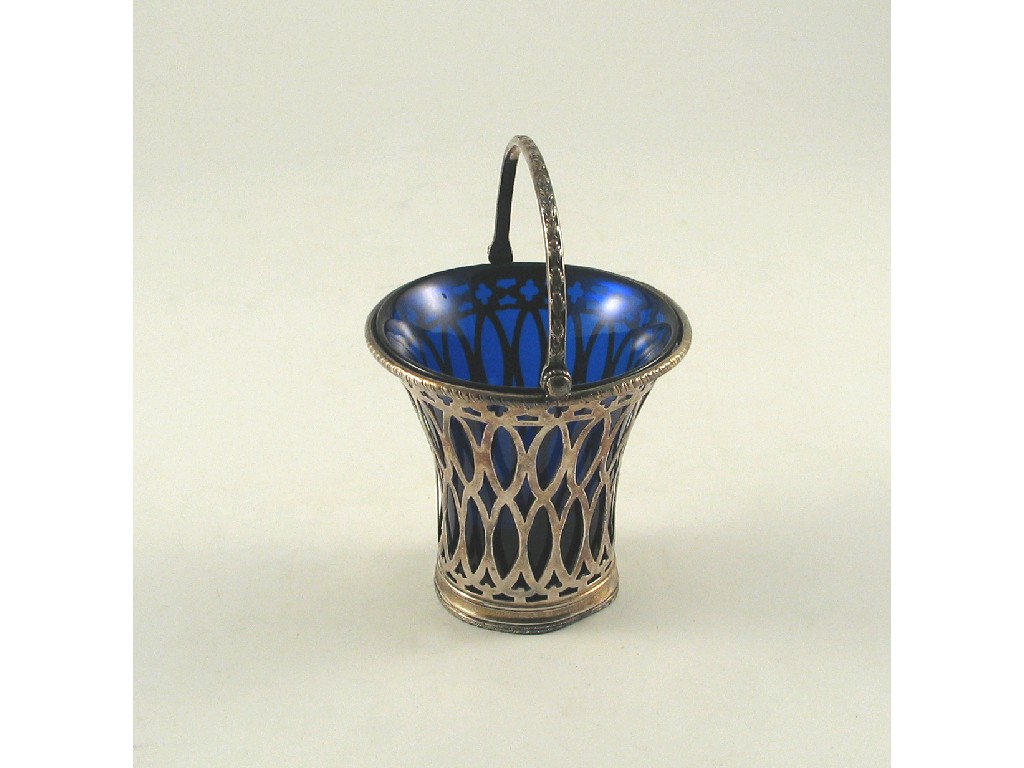 An Old Sheffield plated cream pail, of flared form with pierced sides and a swing handle, c.1790. 2.3in (8cm) high.