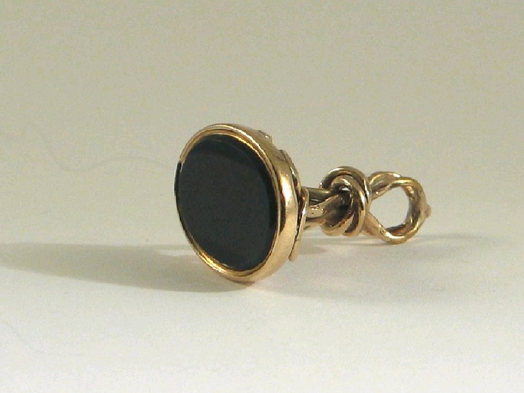 A 19th century gold wirework fob seal, with a plain oval bloodstone matrix.