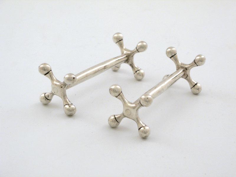 A pair of silver knife rests, conventional form, ball feet, by The Goldsmiths and Silversmiths Company, London 1923, approx. weight 4 oz. (2)
