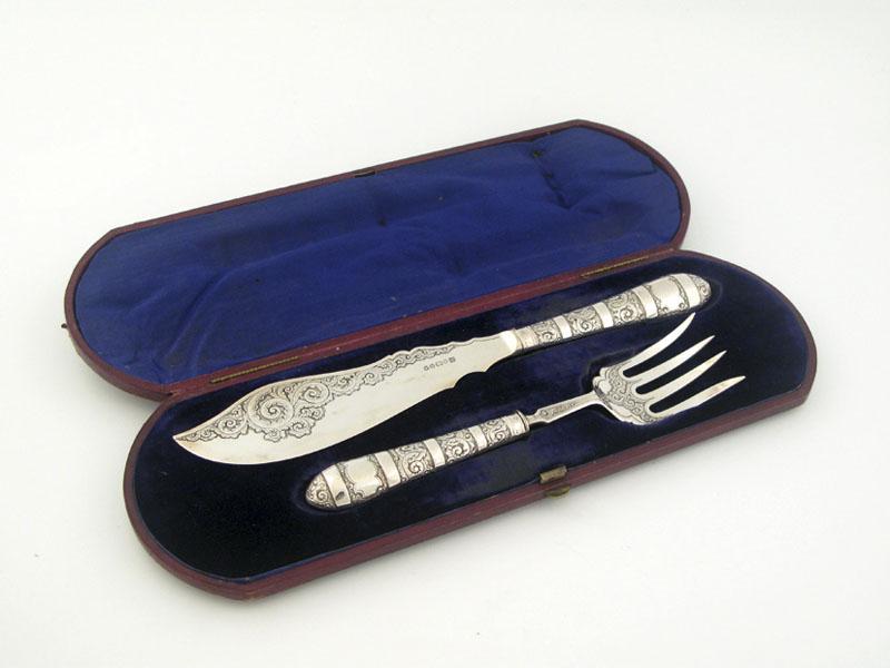 A cased pair of Victorian fish servers
