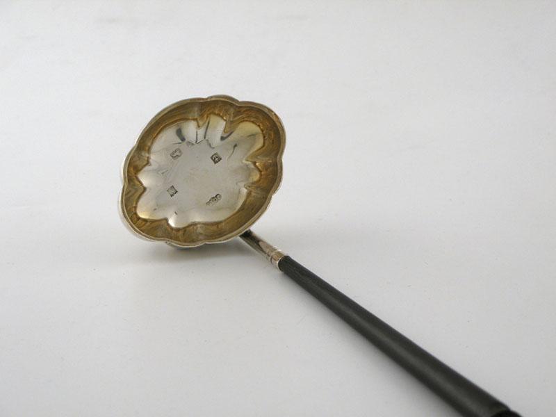 A modern silver punch ladle, lobed oval bowl, twisted handle, by J. Gloster Ltd., Birmingham 1972, length 35cm.