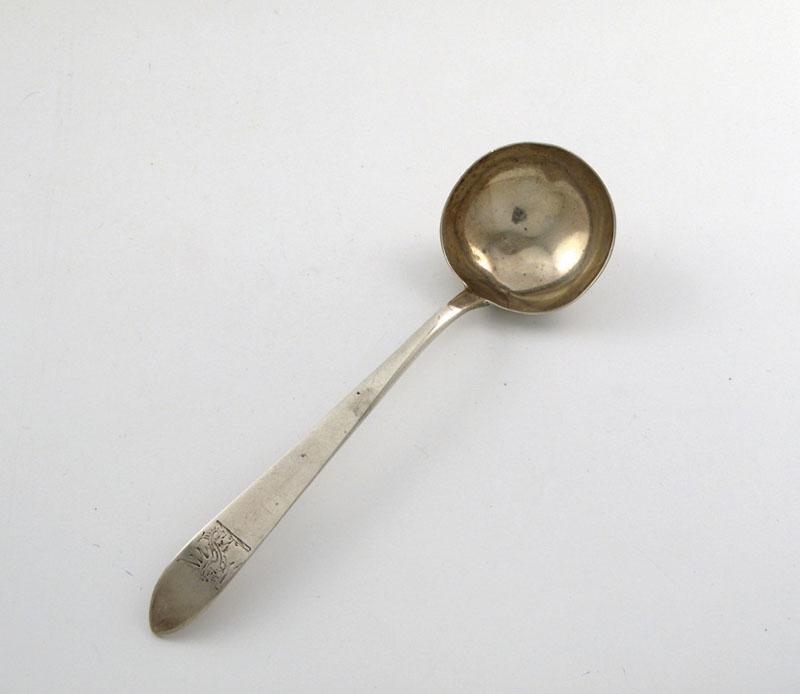 An Irish pointed-end toddy ladle, crested, makers mark W.G, Dublin