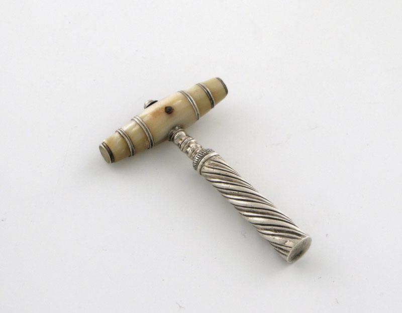 An early 19th century silver mounted and mother-of-pearl corkscrew