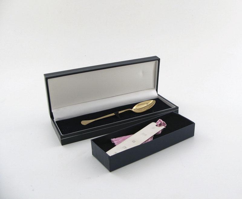 Seven modern, cased, items: four bookmarks, and seal top spoon with hammered bowl, and silvergilt teaspoon and a small photograph frame, mixed makers and dates, approx. weight 3.5oz. (7)