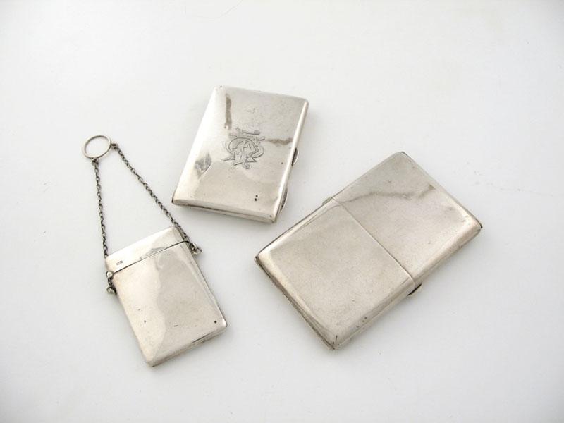 A mixed lot of silver items, various dates and makers, comprising: a card case of rectangular form, with a hanging chain, another card case of purse form, and a cigarette case with a double hinged cover, approx. total weight 12 oz. (3)