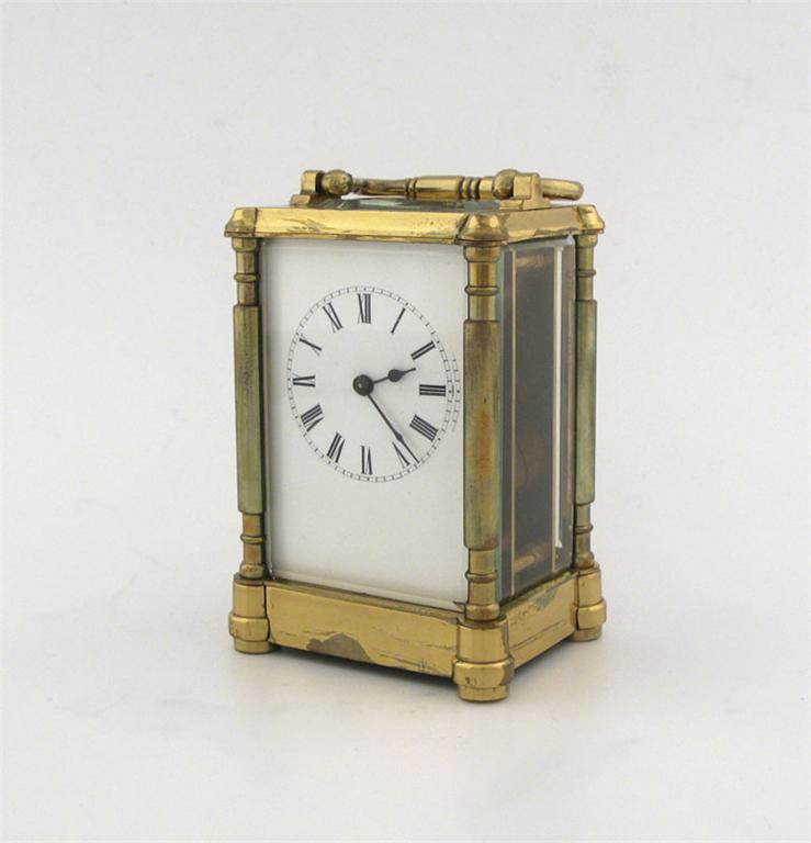 A brass framed carriage timepiece