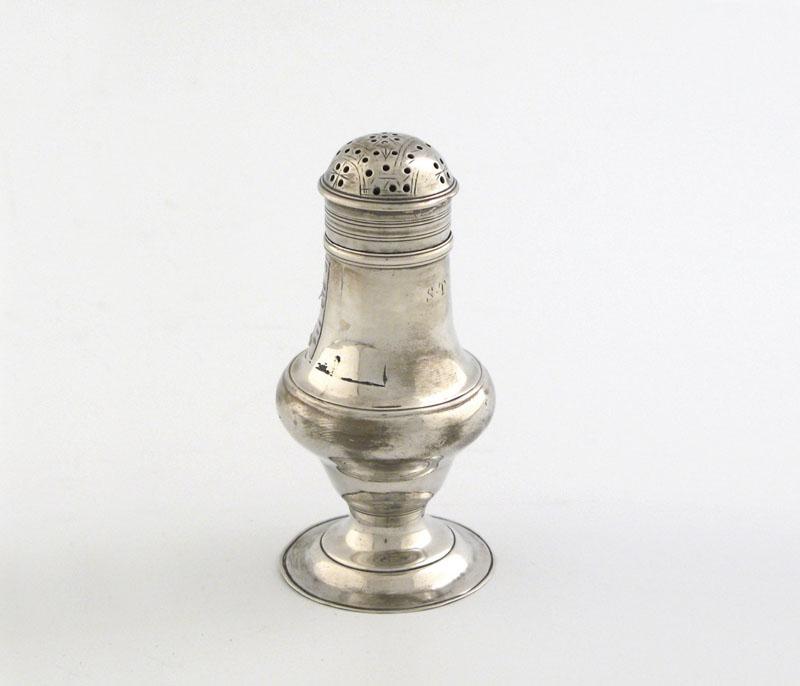 A George III buntop pepper, of baluster form with a spreading circular foot, scratched initials 'S.T' by Thomas Shepherd, London 1777, 10.3cm high.