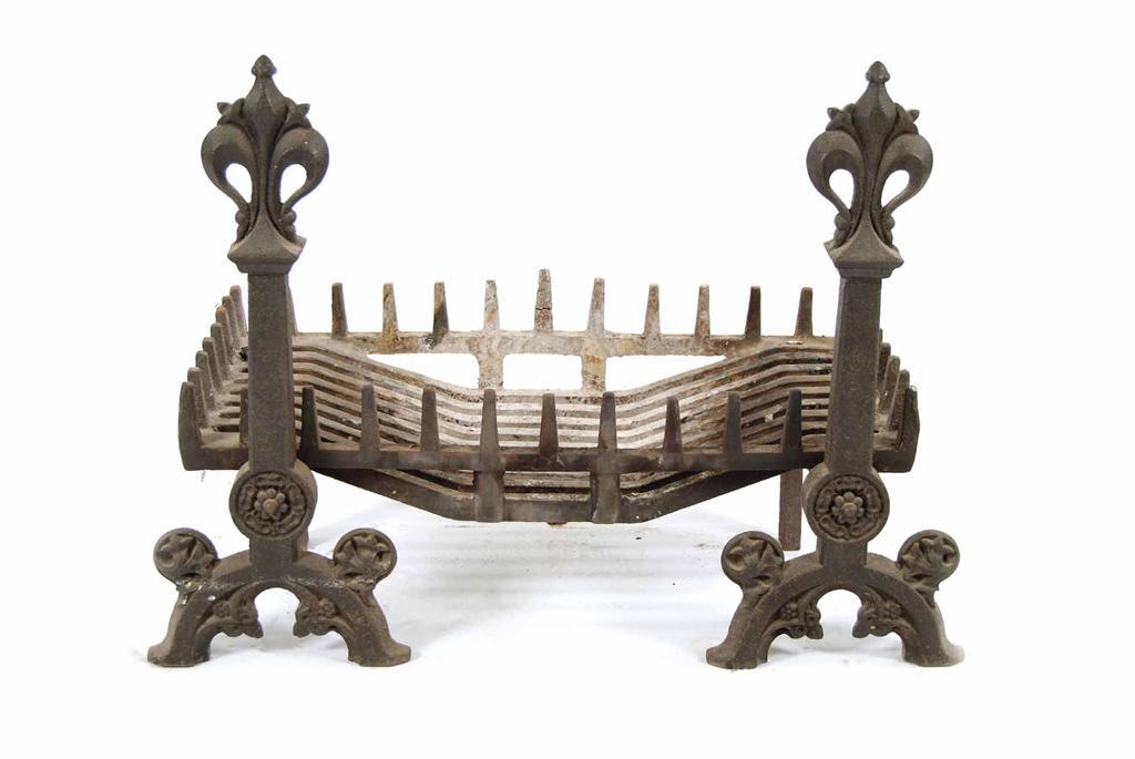 A pair of Gothic style cast iron andirons