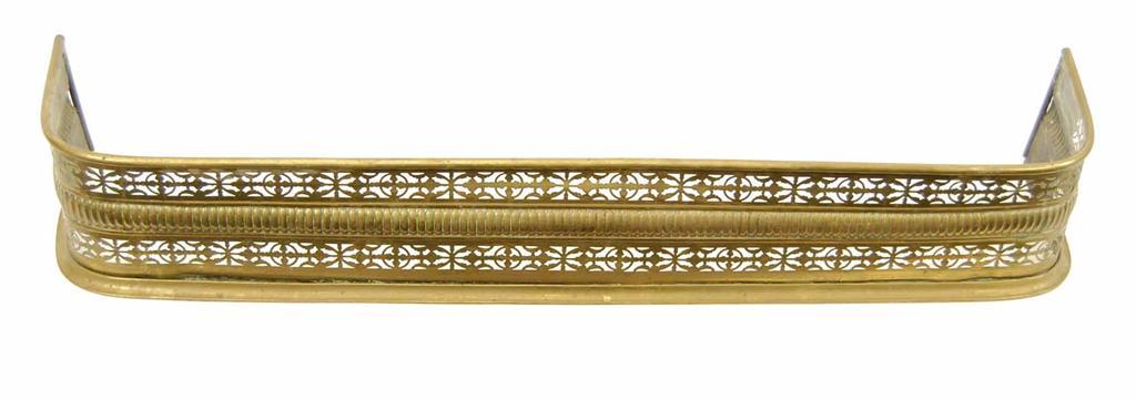An early Victorian pierced and embossed brass fender, 7in (18cm) h, 46.5in (118cm) w, 10in (25.5cm) d.