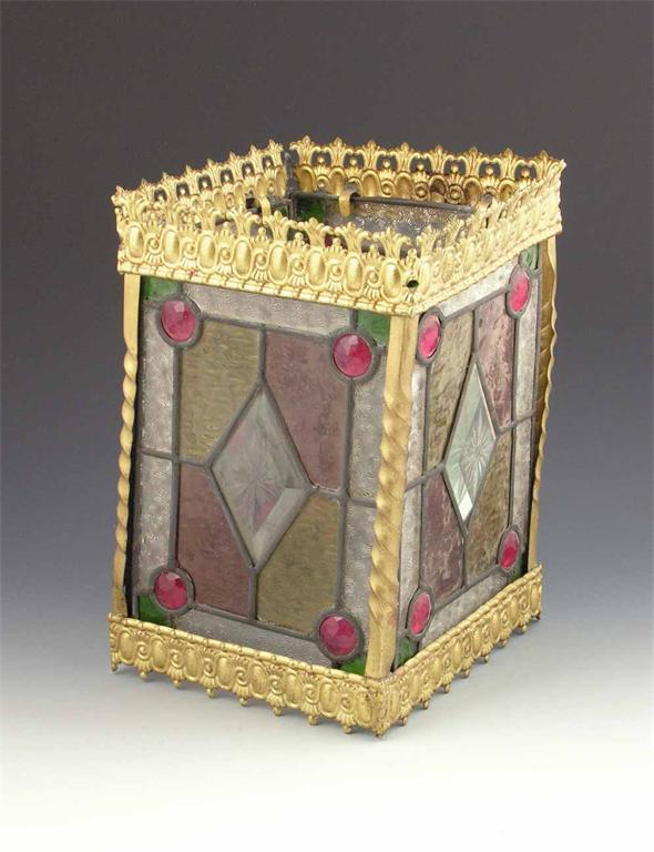 A late Victorian gilt metal and leaded glass panelled hall lantern