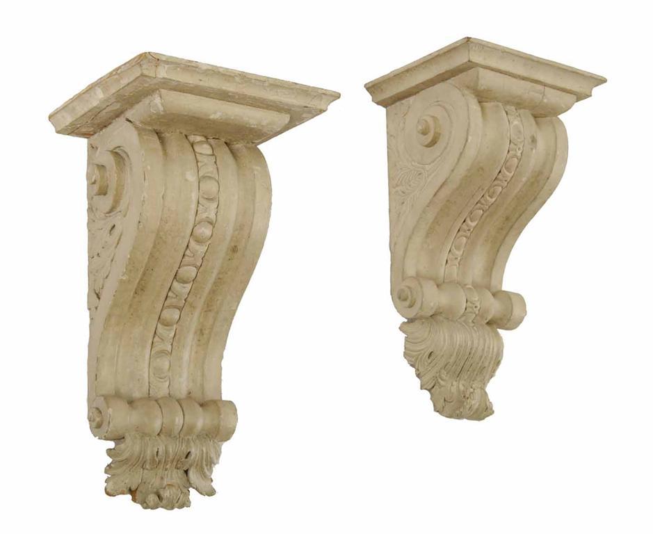 Two similar carved and painted pine wall brackets