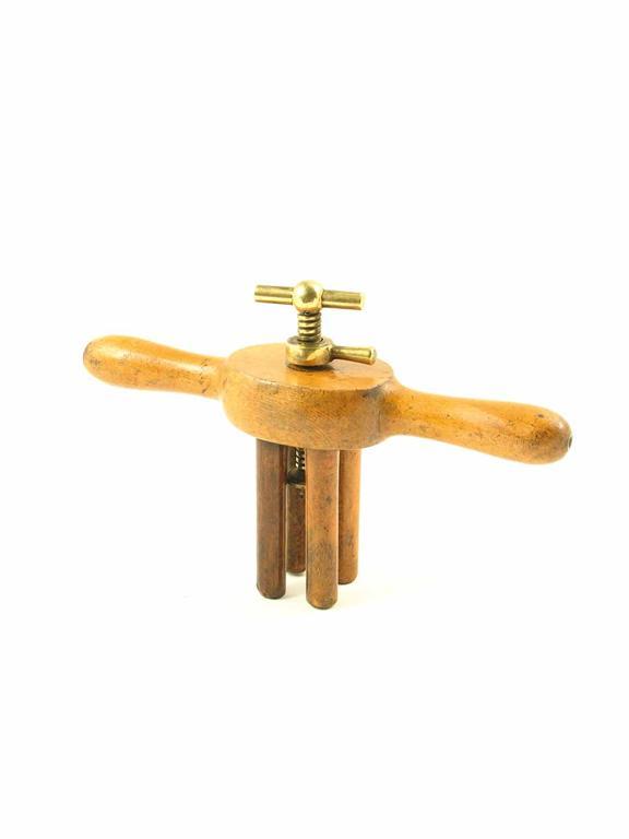 A 19th century fruitwood or sycamore and brass screw gauge