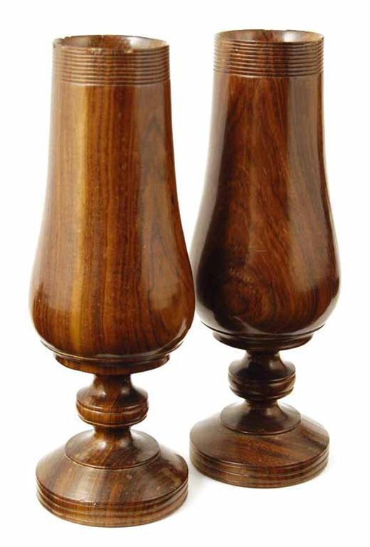 A pair of 19th century turned walnut spill vases