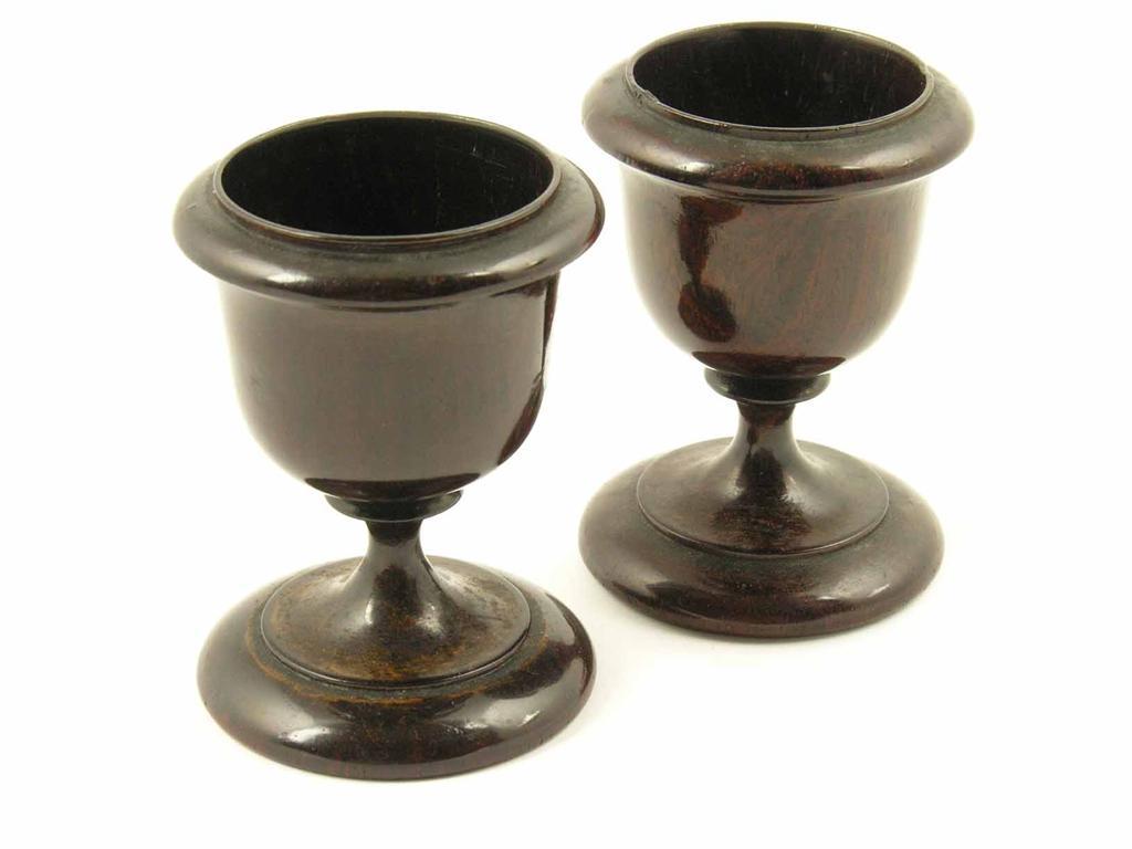 A pair of early 19th century turned rosewood egg cups