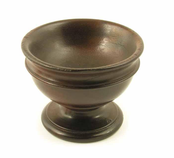 An 18th century turned treen salt, of shallow form with an everted rim on a waisted stem foot, 2.75in (7cm) h, 3.75in (9.5cm) dia.