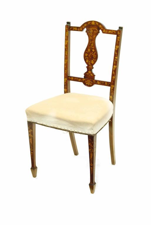A mahogany and floral marquetry side chair