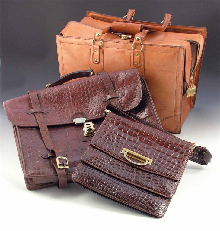 A Canadian leather pilot's case, by Renwick, with a combination lock, 17.5in (44.5cm) w, a Dents leather satchel , and a Bon Gout handbag. (3)