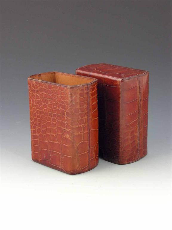 A large crocodile cigar case, with a pull-off cover gilt stamped 'PHILIP MORRIS & CO LTD, 22 NEW BOND ST. W.', with a leather interior and a leather covered metal clip, 6in (15.2cm) h.