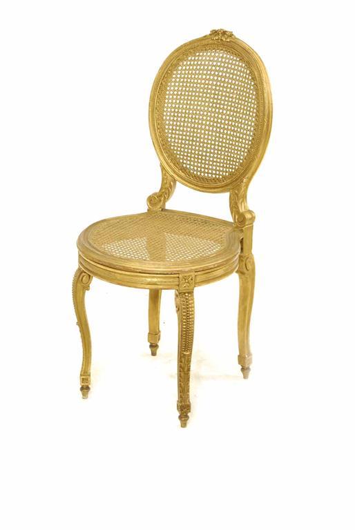 A giltwood side chair, in 18th century style, the caned oval back and seat to beaded and leaf carved cabriole legs, the underside with inventory label 'M346'.