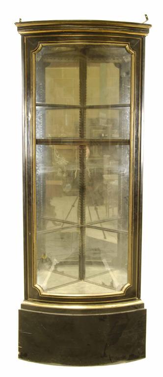 A 19th century ebony and brass bowfront corner vitrine