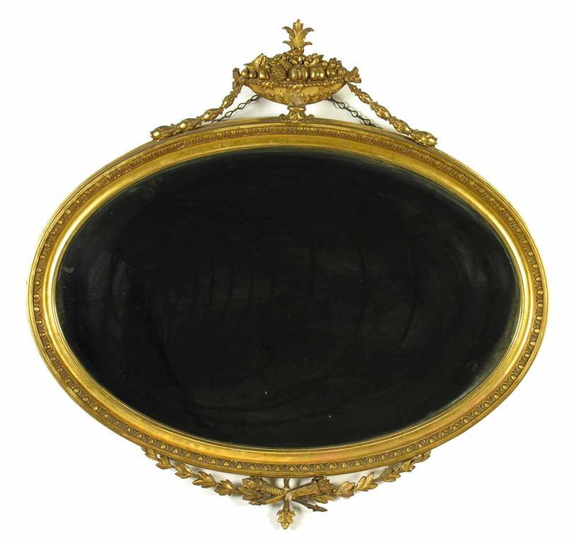 A late Victorian oval giltwood and gesso wall mirror