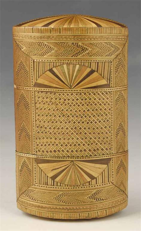 A 19th century French straw work cheroot case, of oblong form with a sliding cover, 4.75in (12cm) l.