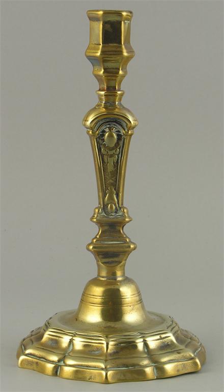 An 18th century French brass candlestick