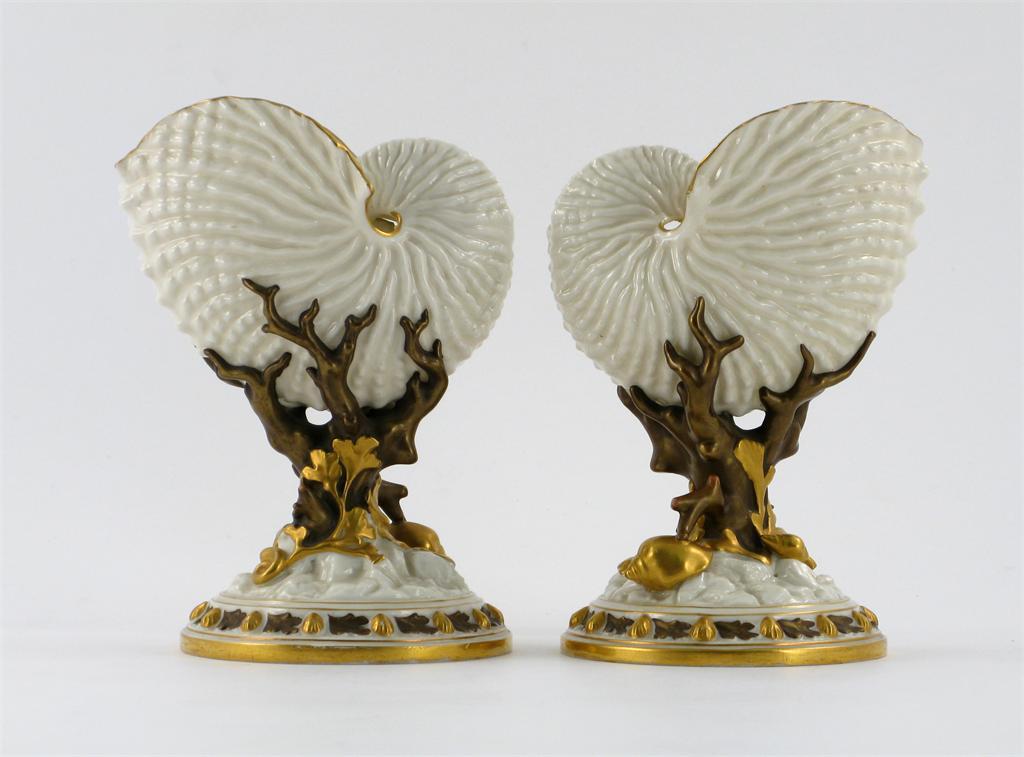 A pair of Royal Worcester Nautilus shell vases