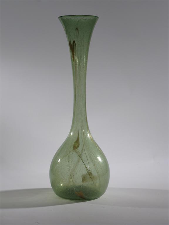 A large James Couper & Sons Clutha glass vase probably designed by Dr Christopher Dresser, ovoid body with tall cylindrical neck and everted rim, streaked and bubbled glass with aventurine inclusions unsigned 56 cm. high