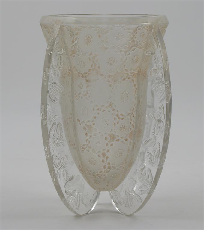 'Papillons' No.10-899 a Lalique clear and frosted glass vase with sepia staining to body