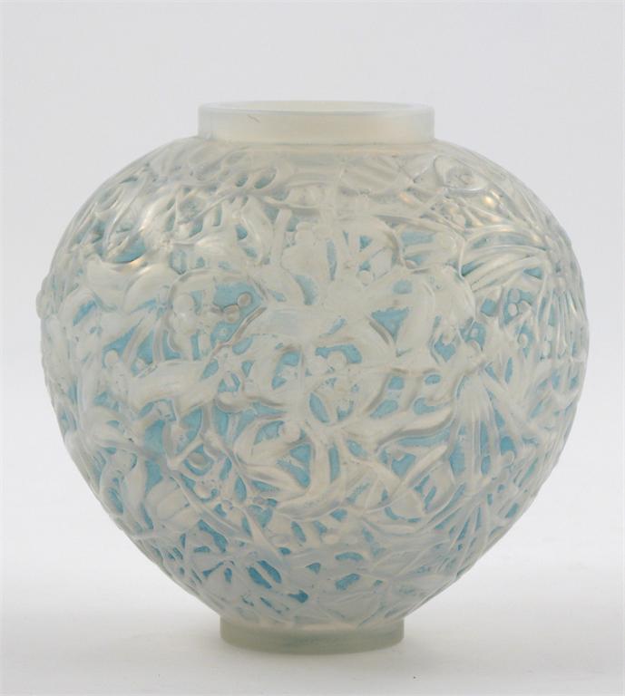 'Gui' No.948, a Lalique stained opalescent glass vase designed by Rene Lalique etched marks to base 18cm. high