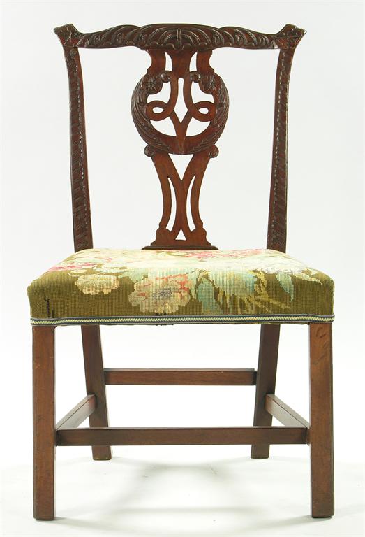 A George III mahogany side chair, the blind carved back with a pierced splat.