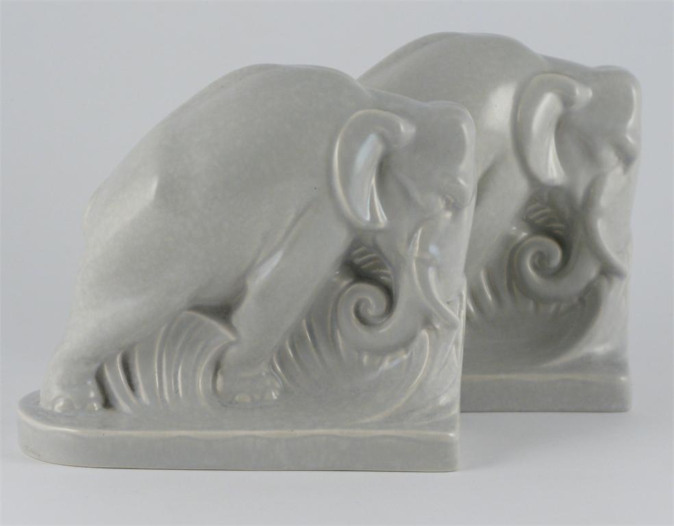 A pair of Poole Pottery elephant book ends designed by Harold Brownsword