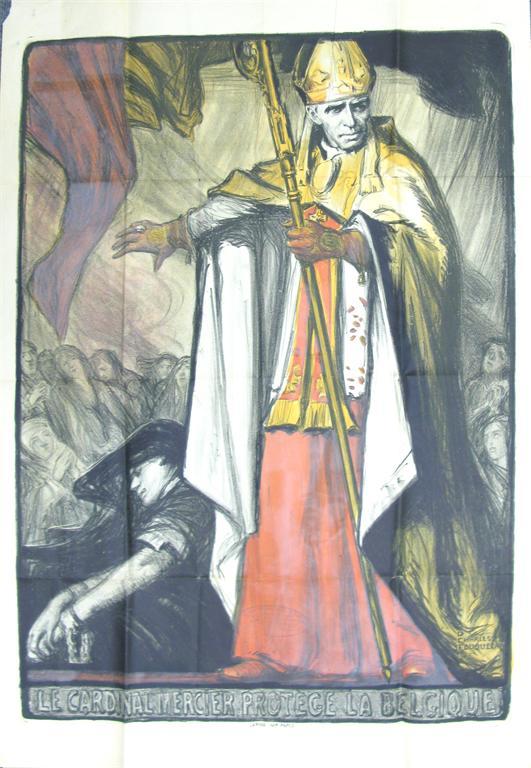 'Le Cardinal Mercier Protege La Belgique' a Lithographic World War I poster by D Charles Fouqueray, dated 1916, published by Lapina Paris, unmounted signed in the print 120 x 80cm.