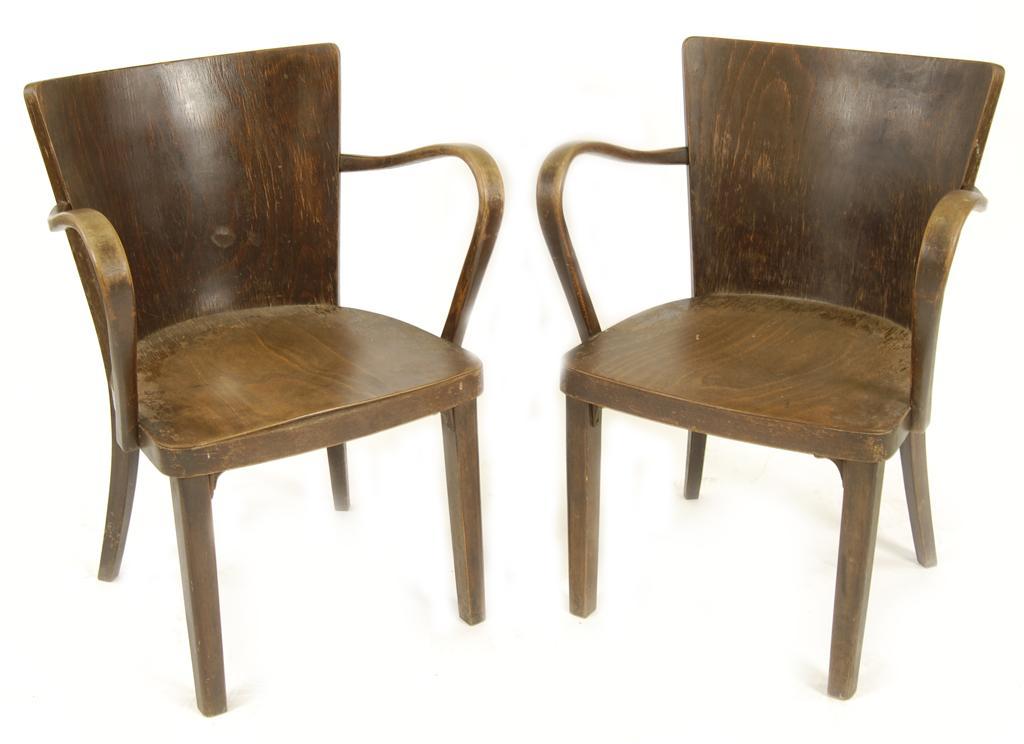 A pair of Thonet bentwood armchairs stamped Thonet marks