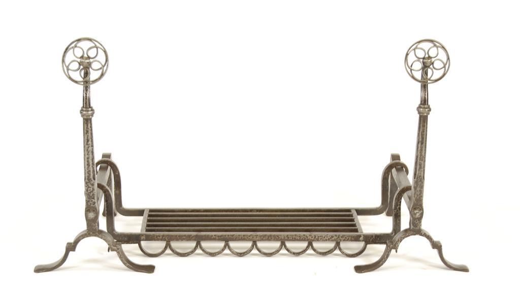 A Cotswolds School burnished steel fire grate unsigned 85cm. wide