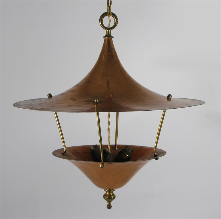 A large copper and brass hanging lantern probably Birmingham Guild of Handicraft