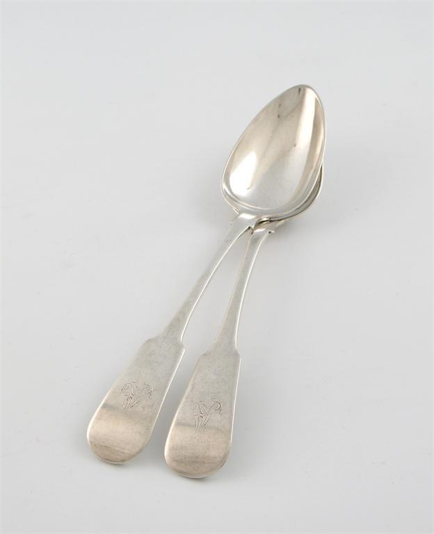A pair of early 19th century Scottish provincial silver Fiddle pattern tablespoons