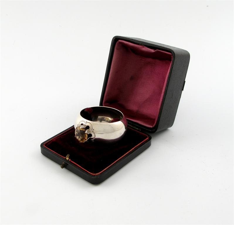plain circular form, mounted with a yellow Cairngorm, in an associated case.
