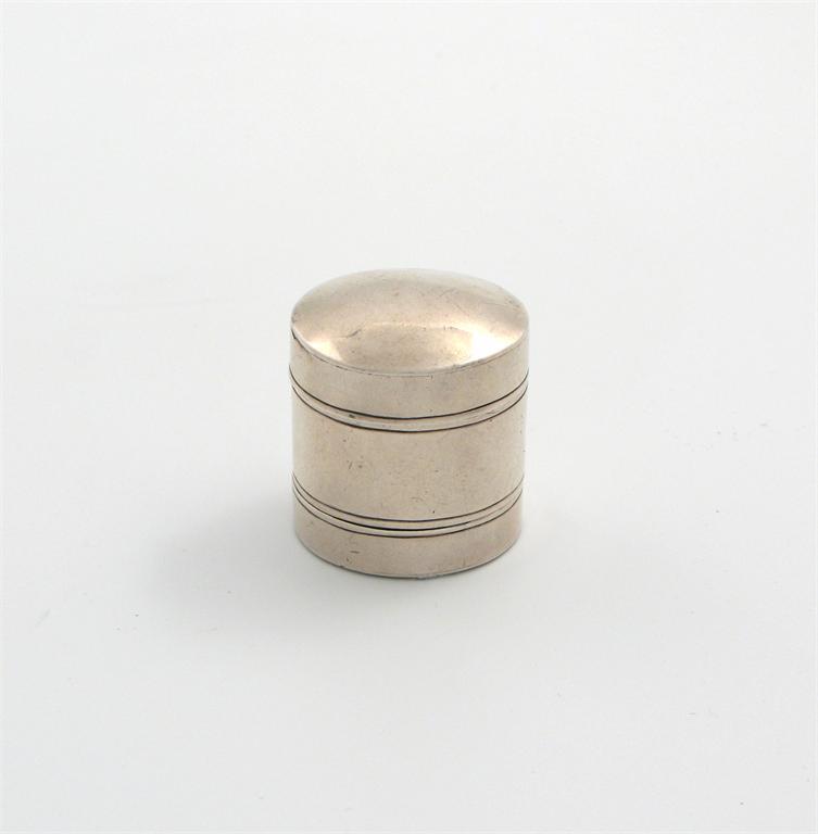 cylindrical form, pull off slightly domed cover and base, height 3.2cm.