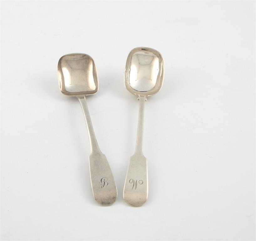 the terminal initialled, plus another silver Fiddle pattern sugar spoon, with unascribed marks, approx. weight 2oz. (2)