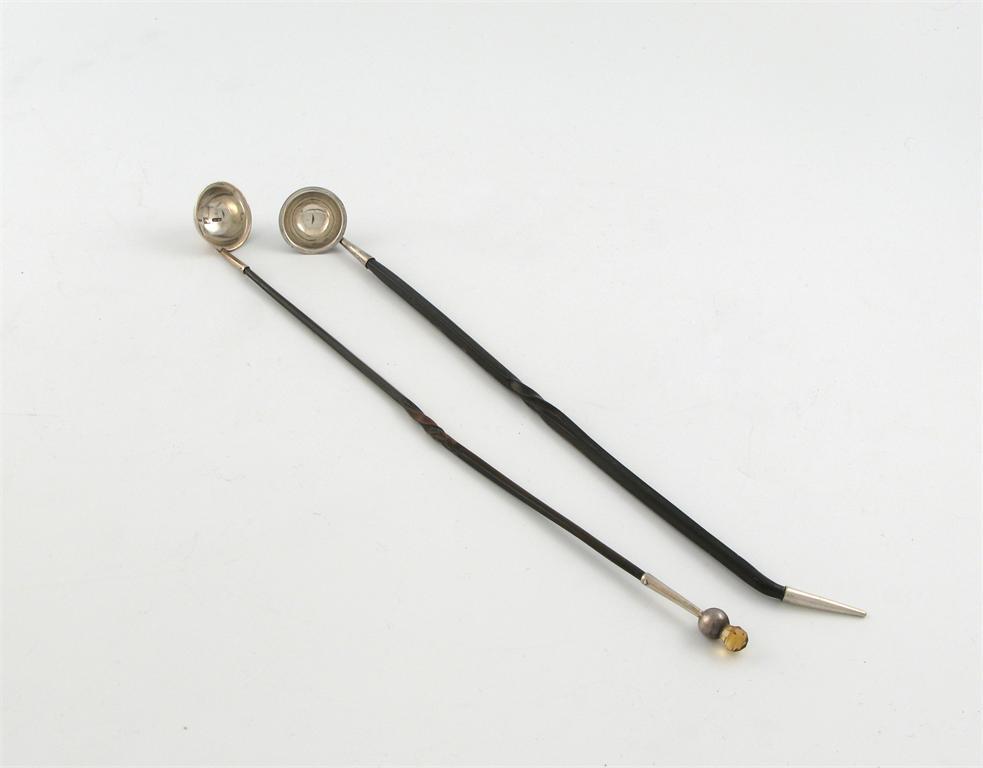 Two late 19th century Scottish provincial silver toddy ladles,