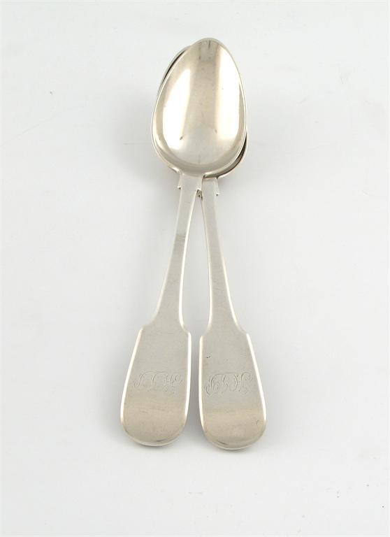 A pair of early 19th century Scottish provincial silver Fiddle pattern tablespoons