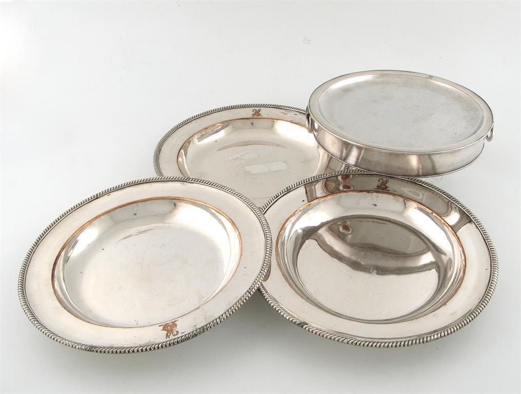 circular form, gadroon borders, engraved with a crest,