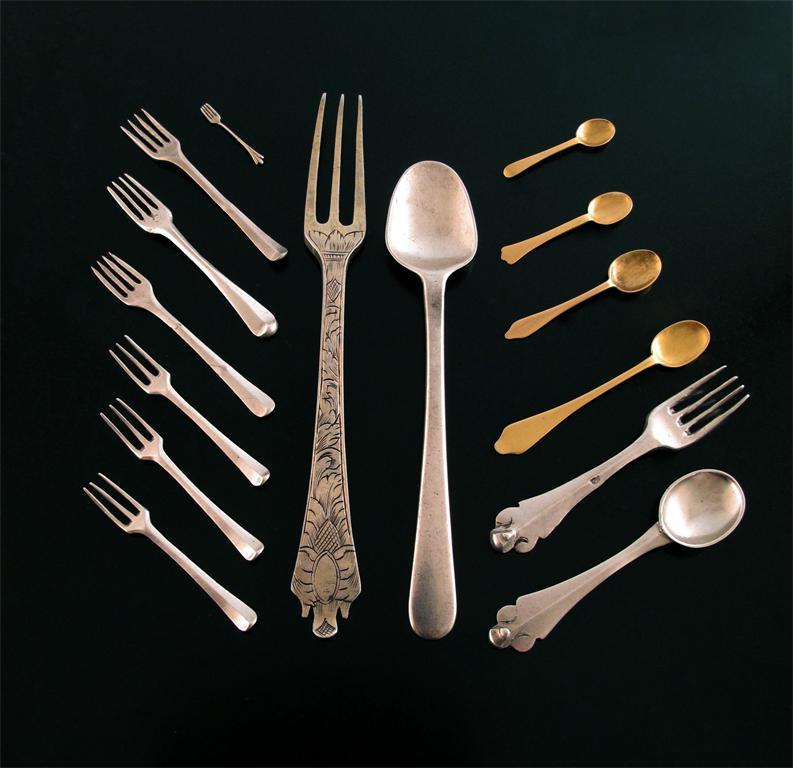 A late 17th century silver-gilt trefid sweet meat fork, unmarked, the front and back with engraved foliate decoration, length 10.3cm.