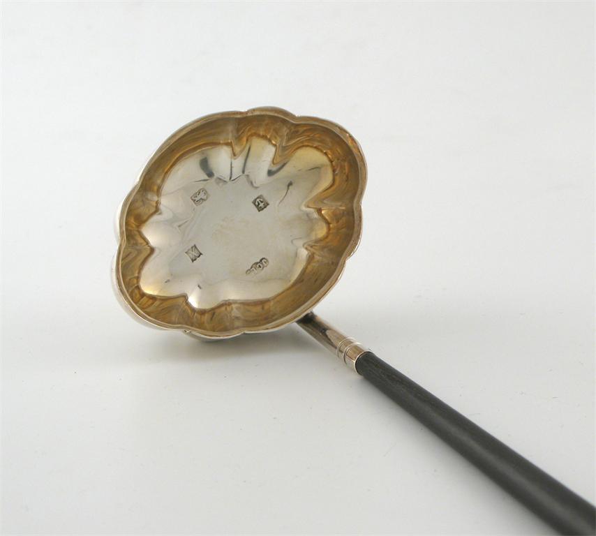 A modern silver punch ladle, by J. Gloster Ltd., Birmingham 1972, lobed oval bowl, twisted handle, length 35cm.