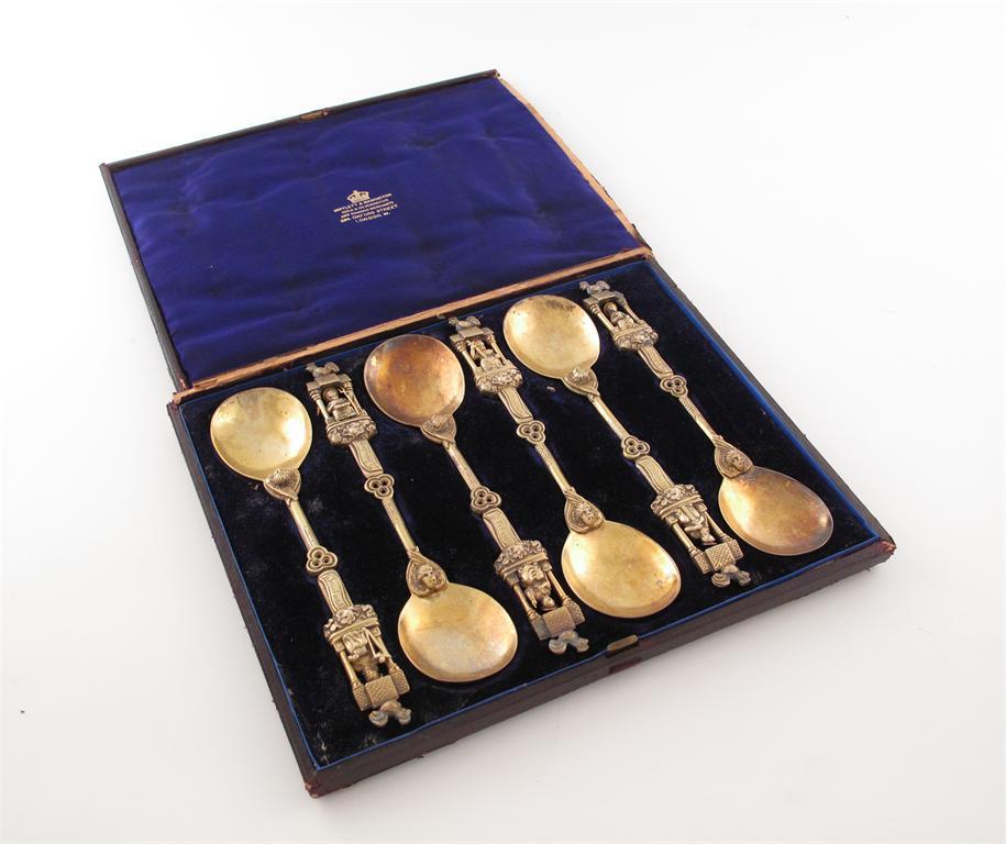 A set of six late 19th century continental silver-gilt spoons,