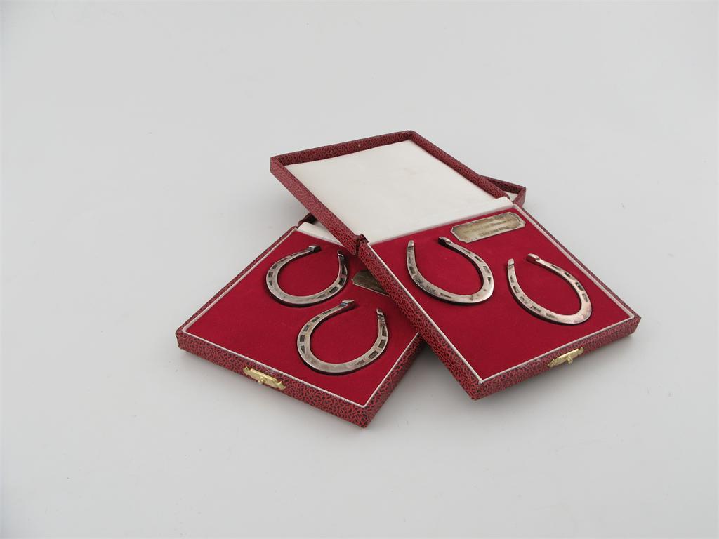 Horse racing: Two modern cased pairs of 'horseshoe' napkin rings