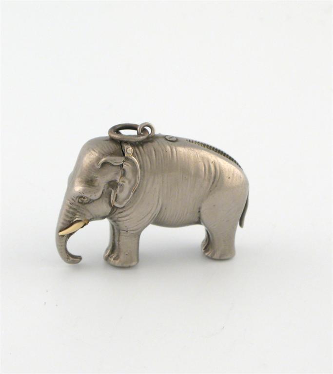 with ivory tusks, red eyes textured skin and striker on its back, the head forming hinged cover,
