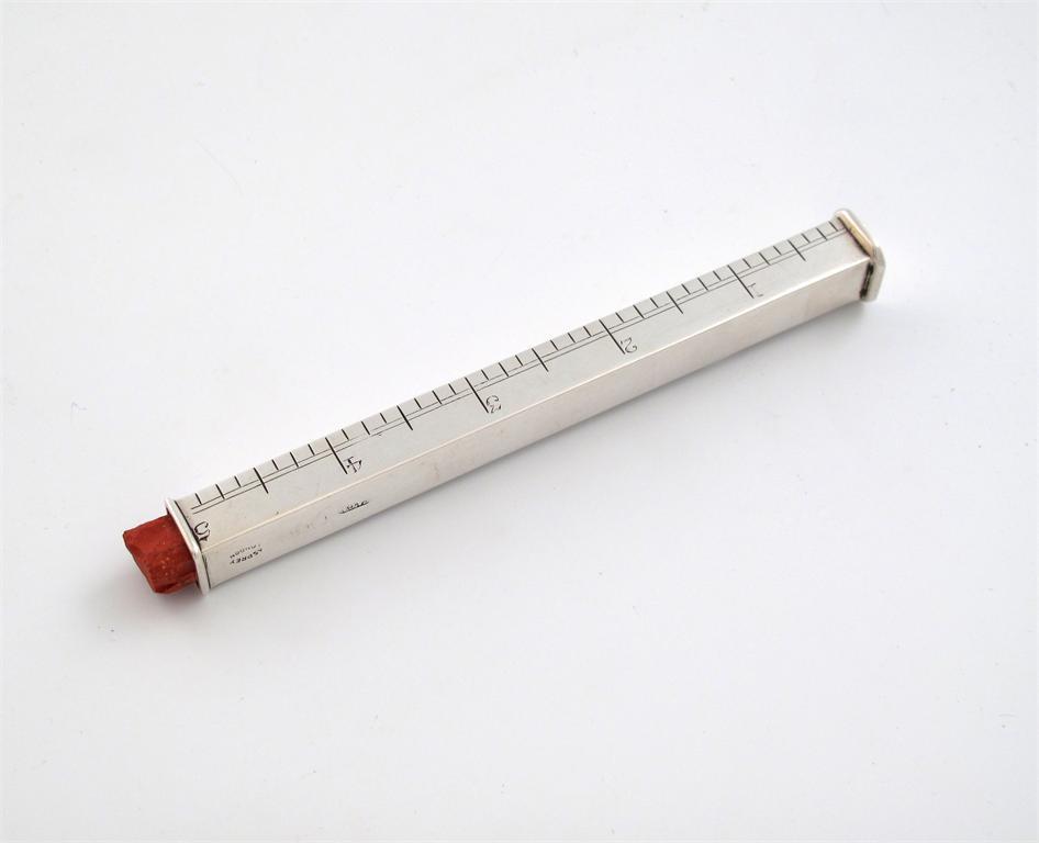 rectangular form, slide action movement, engraved with a five inch rule, length 12.8cm.